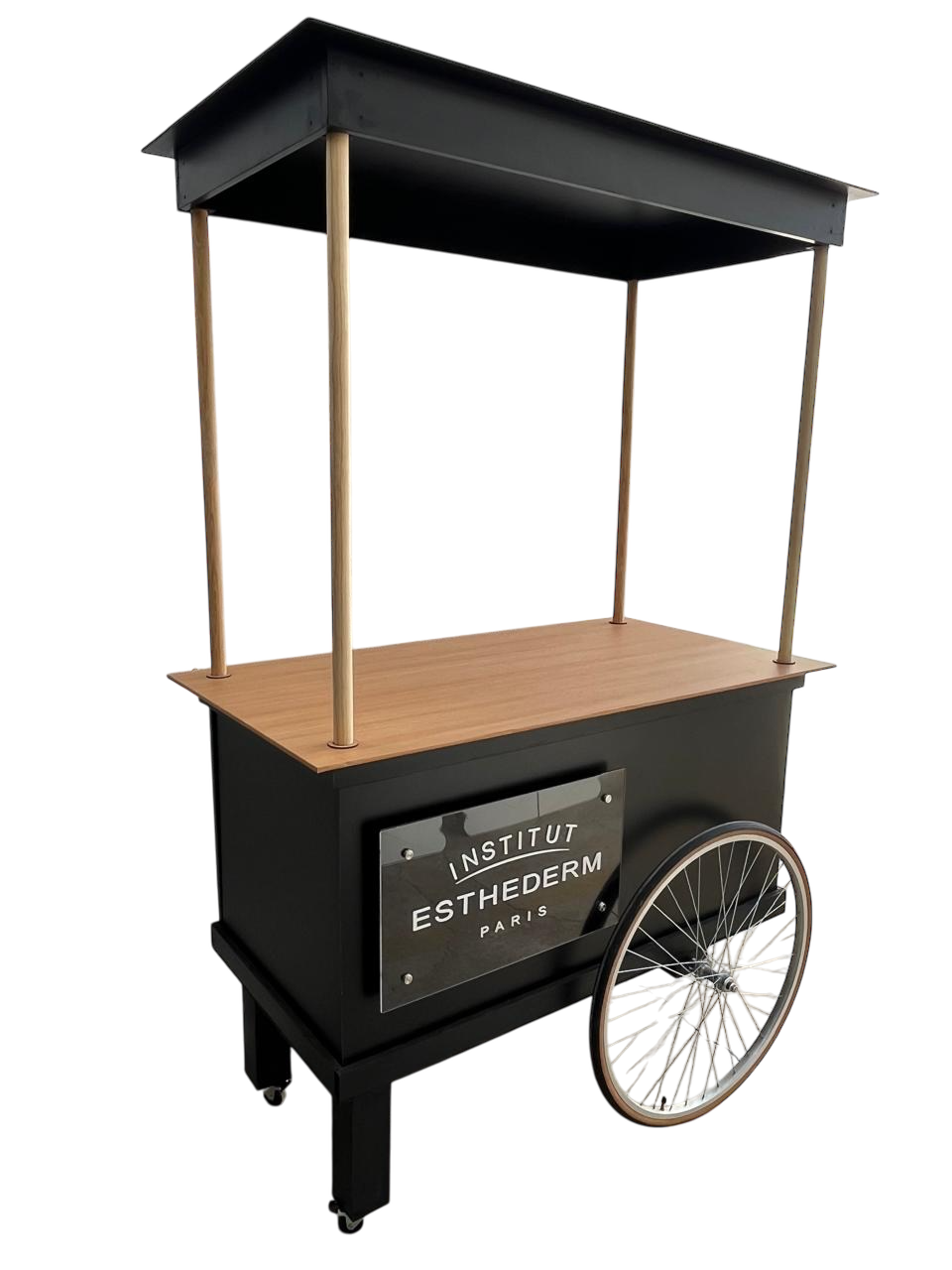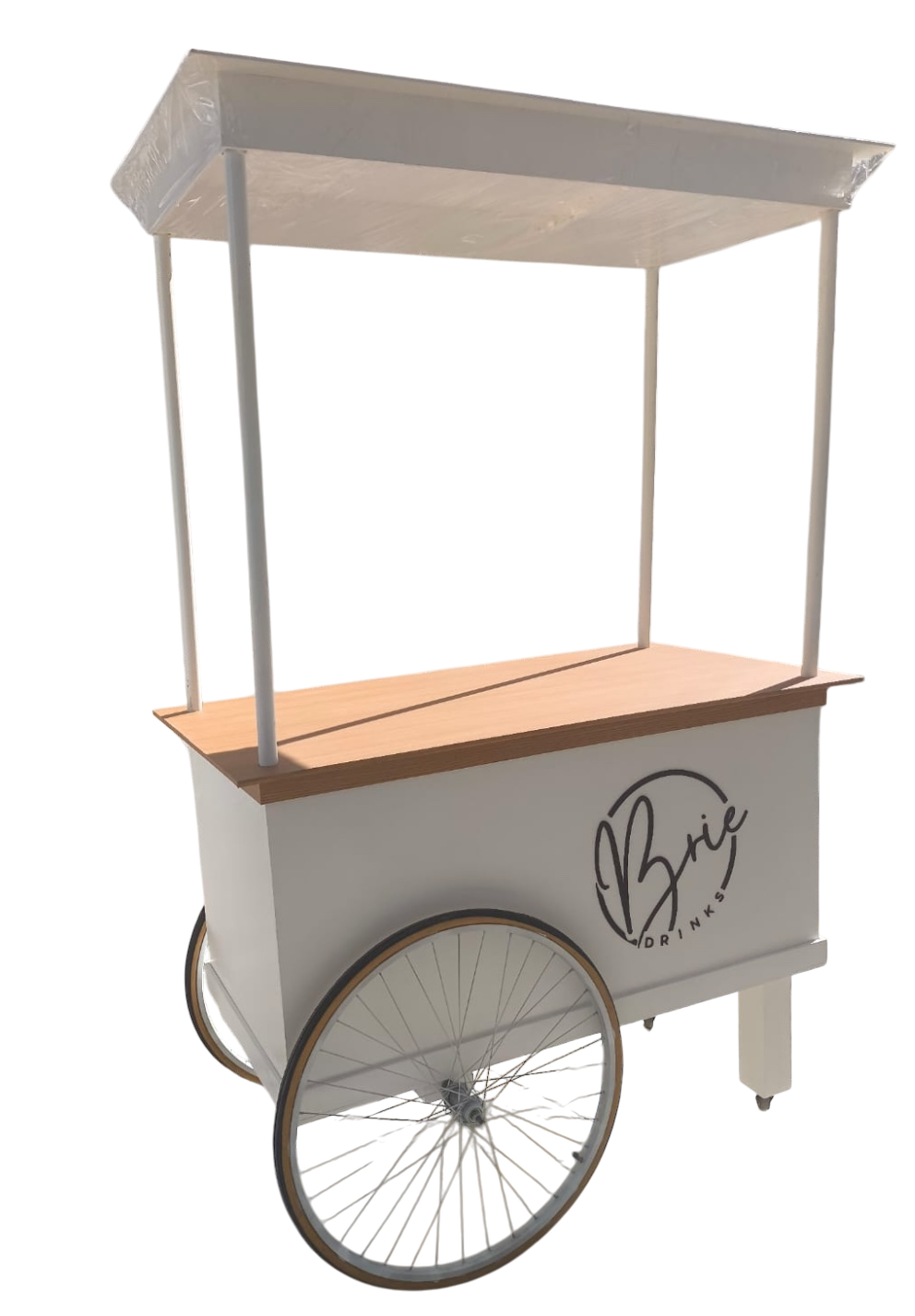 Nuestra barra está fabricada con techo de melamina de 15 mm (a elegir en negro o blanco), perfecta para uso en interiores o exteriores techados. Su diseño es ideal para emprendedores, eventos, activaciones de marca o puntos de venta móvil.